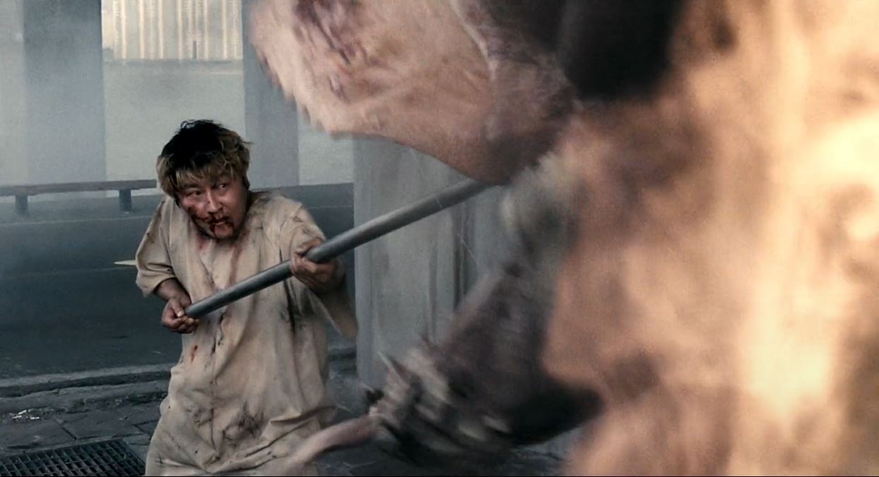 그 안에서 강두는 아버지의 존재로 현서를 지켜내야만 했다. 처음 무능하고 한강둔치 매점에서 잠만 자고 있는 염색한 나날이 아빠 하지만 자다가도 현서 목소리에 벌떡 일어나는 딸바보 강두 그런 바보 같던 사람이 고통 속에 성장하여 꽤 많은 양의 마취제를 투여하고도 웬만해서는 마비가 되지 않는 인간의 원초적인 생명력을 보여주며 제대로 배우지 못해 영어를 알아듣지 못하지만 미국인 의사와 한국인 의사가 나누는 그 길고 전문적인 영어 속에 자신이 알아들어야 할 단 두 마디 “노 바이러스”라는 말을 정확하게 집어낸다. 긴 쇠 파이프 하나로 또 아버지라는 이름 하나로 영웅이 된다. 그리고 그것은 가족을 지키려는 마음에서 비롯된다.