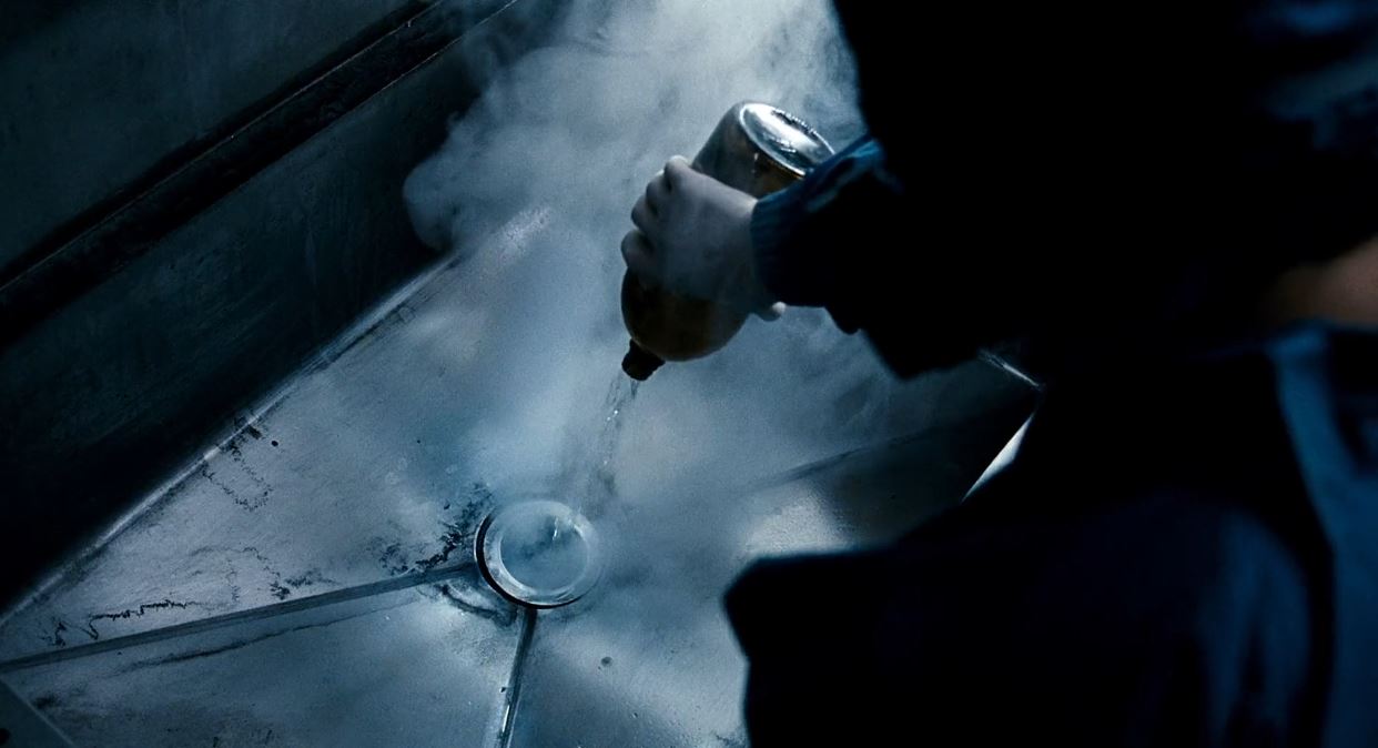 선반 위를 손바닥으로 쓸어내고 먼지를 보여준다. 그렇다면 청소를 하라고 지시하면 되는 것이고 군무원 김 씨는 청소하려고 하자 정확하게 말하면 ‘먼지 낀 포름알데히드’라고 강조까지 한다. 손가락으로 먼지 낀 포름 알데히드 윗부분을 동그랗게 따라 그린다. 더글라스는 병에 담긴 시체 방부 처리용 포름알데히드를 하수구에 그냥 쏟아버리라고 한다. 김 씨는 독극물 규정 이야기를 하지만 맥팔란드는 말을 끊고 그냥 하수구에 다 부으라고 명령하자 김 씨는 한강으로 들어갈 거라고 우려하지만 더글라스는 한강은 무척 크다고 한다. 방독면을 쓴 김 씨는 포름알데히드를 한 병 한 병 수채구멍에 따라 붓고 있다. 처리를 끝낸 포름알데히드 병들이 먼지가 쌓인 모습 그대로 줄지어 늘어서 있고 그 모습은 흘러가는 한강 물과 오버랩되어 하나가 된다.